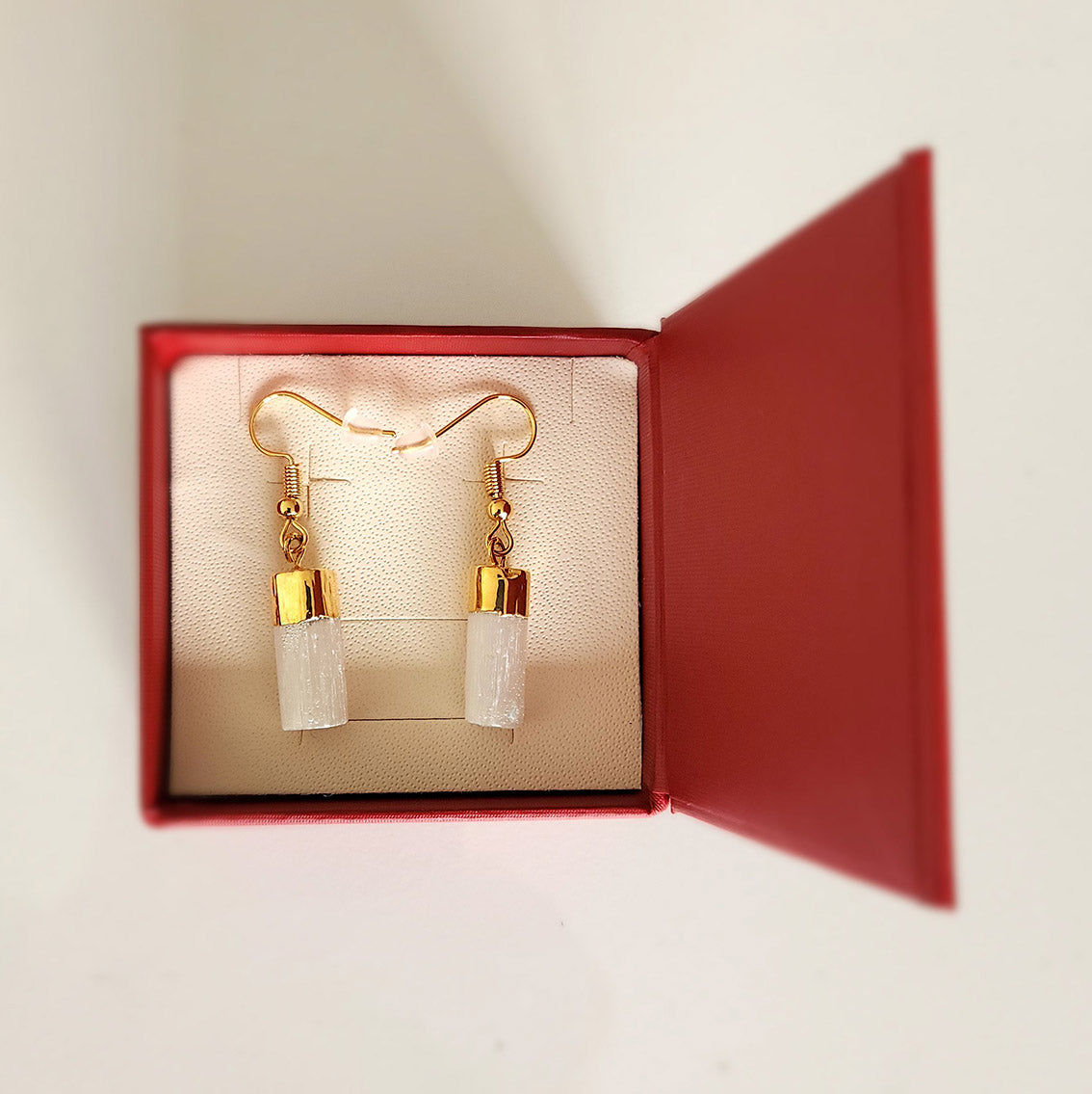 Attraktiver Ohrschmuck aus weißem Selenit (Fasergips)
